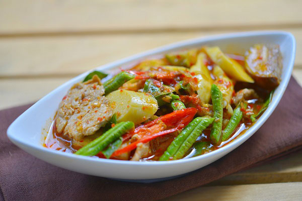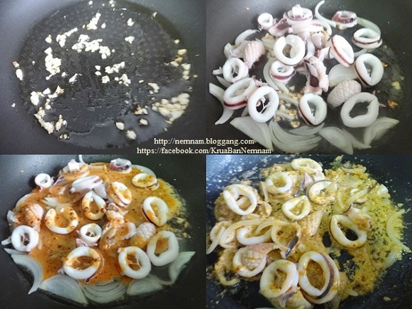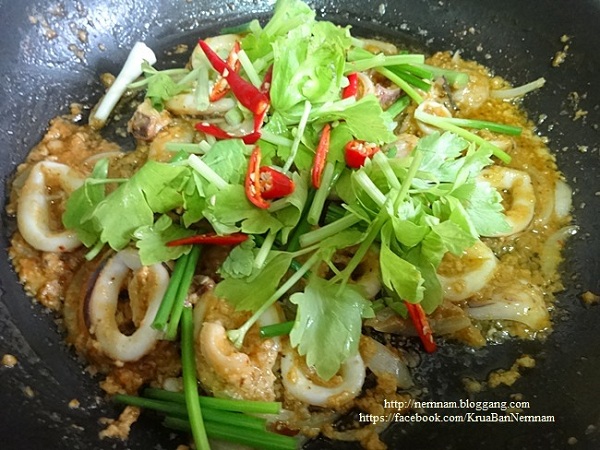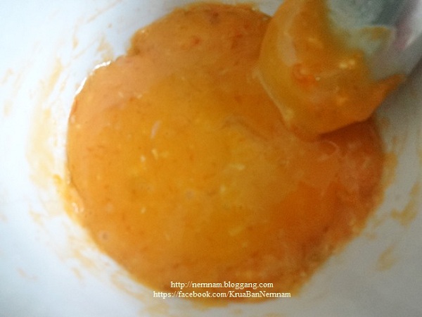 2. ปรุงรสด้วยน้ำปลา น้ำมะนาว น้ำมะขามเปียก และน้ำตาลปี๊บ คนพอเข้ากัน
